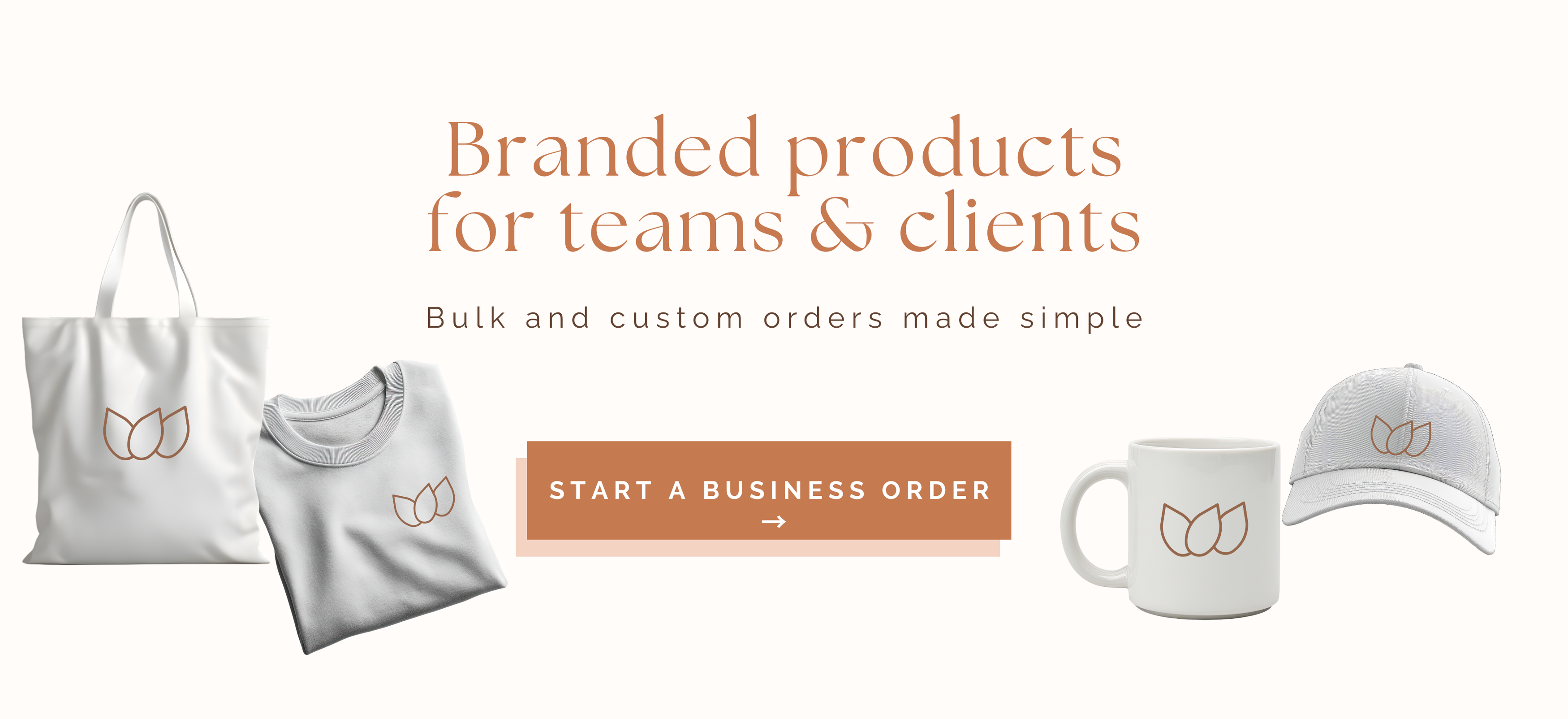 Beyond individual gifts, we partner with businesses to create meaningful promotional products that leave a lasting impression. Whether you’re looking to welcome new clients, celebrate your team, or elevate your brand’s presence, we apply the same heart and intention to your professional vision. Let’s turn your brand identity into a curated experience that feels as personal as a hand-chosen gift.